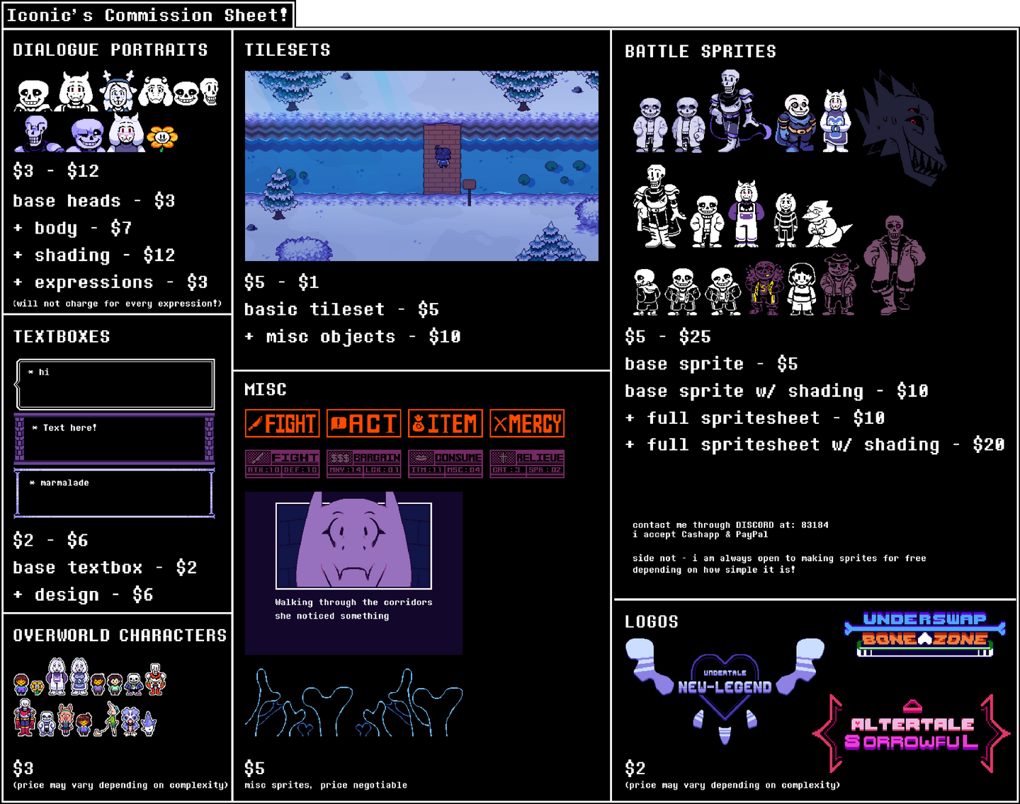 My name is Iconic and welcome to my Caard page! I currently own 2 projects, DUSTTALE: Duststorm & UNDERTALE: New-Legend. I'm working on a multitude of different projects but the main ones can be seen listed belowPlacek's COTW